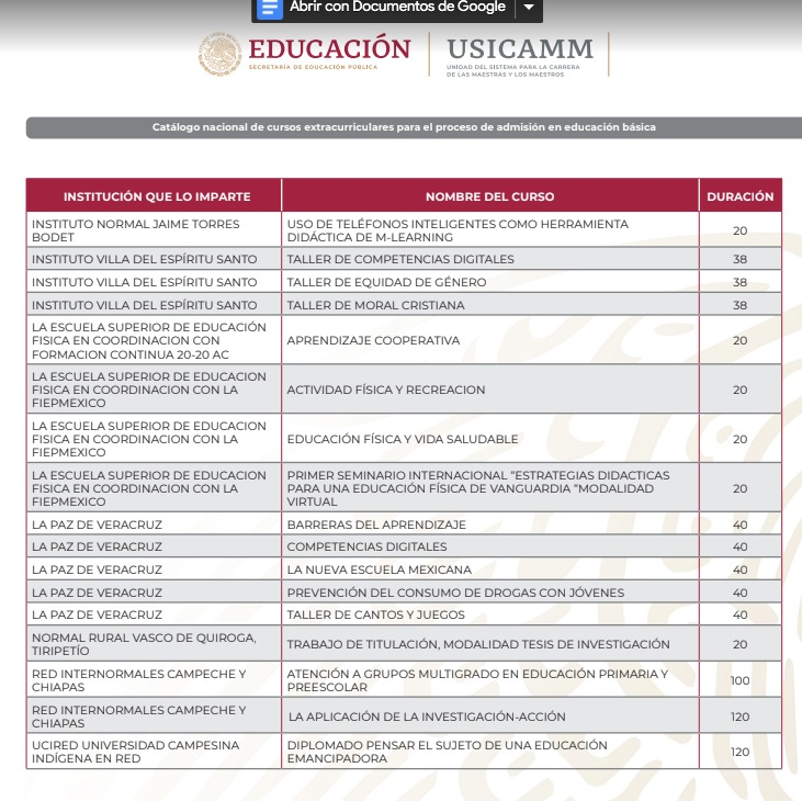 En un video publicado en las redes sociales de la Unidad (https://www.facebook.com/watch/live/?ref=watch_permalink&v=4566410620130961) , se señala que estos cursos son los autorizados y validados por la DGESUM, la UPN y los CAM.