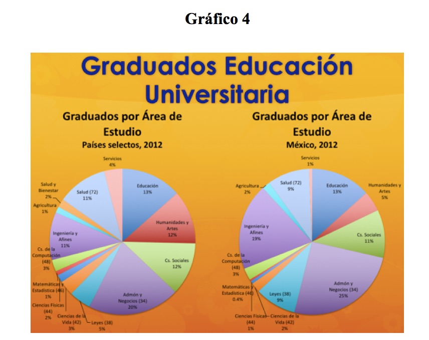 México está operando una economía con más ingenieros, abogados y administradores que el resto del mundo. Por el otro lado, es una sociedad con una muy magra formación de profesionales en el terreno de las Humanidades y las Artes.