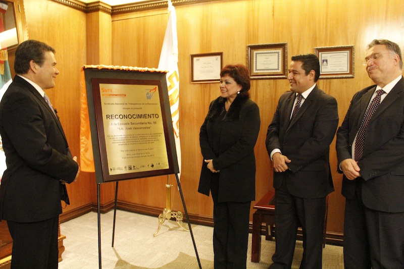 Por obtener durante 11 años consecutivos premios internacionales que la avalan como una escuela de excelencia, el Sindicato Nacional de Trabajadores de la Educación (SNTE) reconoció a la Escuela Secundaria Número 50, José Vasconcelos, de Monterrey, Nuevo León.