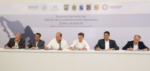 Nuño Mayer se reunió con los gobernadores de Coahuila, Durango, Nuevo León, San Luis Potosí y Tamaulipas, en lo que fue la Segunda Reunión del Grupo de Coordinación Regional Zona Noreste, al finalizar firmaron el Acuerdo de Arteaga.