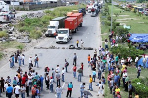 Maestros que bloqueaban la caseta de Acayucan, en la carretera que comunica Veracruz con Villahermosa, Tabasco, se enfrentaron con conductores de vehículos de carga que con palos y piedras rompieron el cerco, con saldo de tres mentores lesionados.