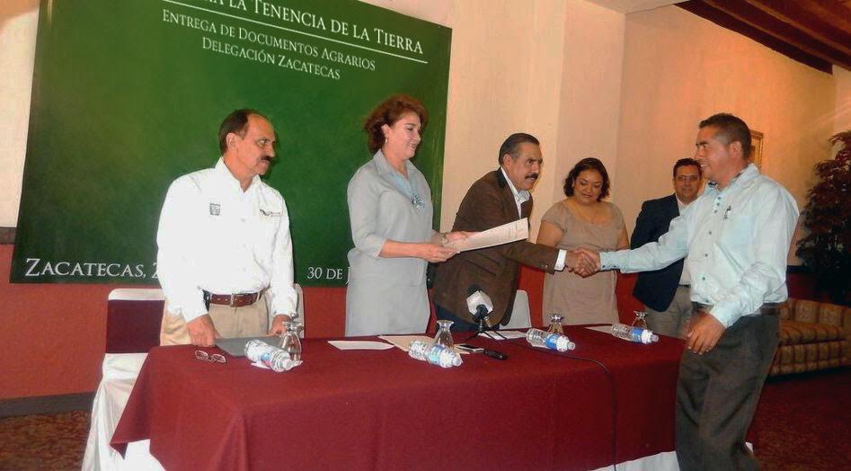 En la entrega de títulos de propiedad en Zacatecas, estuvieron los 13 directores de los Cecytez; la directora general del Colegio de Estudios Científicos y Tecnológicos del Estado de Zacatecas, Herminia López Magallanes, y el delegado federal del Registro Agrario Nacional, Arturo Jairo García