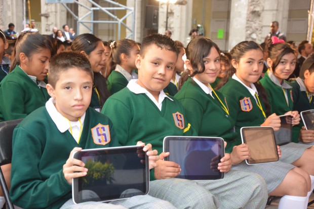 Para Mancera, el reto ahora es llegar al 100% de cobertura. El funcionario encabezó la entrega de 265 tabletas electrónicas en la Escuela Secundaria Diurna No. 1, “César A. Ruiz”, el primero de los 13 planteles en los que tres mil 230 alumnos de primer grado de secundaria recibirán estos dispositivos “para mejorar el método de aprendizaje”.