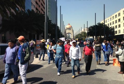 La dirigencia optó por movilizar a sus agremiados al Monumento a la Revolución, para “reforzar” su plantón, evitando así marchar al Zócalo, donde cuadras antes ya los esperaban granaderos de la Secretaría de Seguridad Pública.