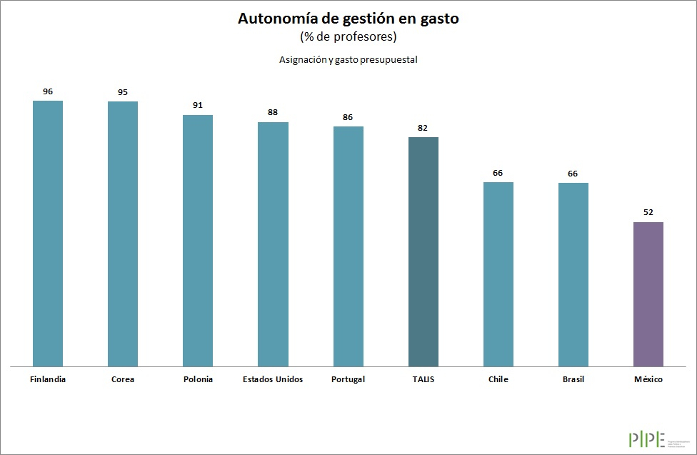 Alrededor de 50% de los profesores mexicanos trabajan en secundarias donde los directores no consideran que la escuela cuente con autonomía en la asignación y gasto de presupuesto. Muy por debajo del promedio TALIS.