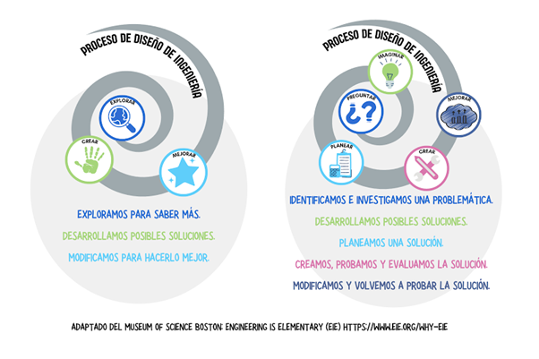 Diseñar experiencias de aprendizaje basadas en el Proceso de Diseño de Ingeniería2 permite que niñas, niños y adolescentes enfrenten retos auténticos: problemas reales que les importan y que los invitan a imaginar, construir y mejorar soluciones. Este enfoque iterativo —no lineal— activa la curiosidad, el pensamiento crítico y la resiliencia, al fomentar el aprendizaje a partir del error y el trabajo colaborativo. Al enfrentarse a estos desafíos, el estudiantado fortalece su autoconocimiento, al descubrir lo que le interesa y motiva; desarrolla una mentalidad de crecimiento, al probar, equivocarse y volver a intentarlo; y refuerza su autoeficacia, al comprobar que sus ideas pueden convertirse en soluciones reales. De este modo, el aprendizaje adquiere sentido y se enlaza de forma auténtica con la vida.