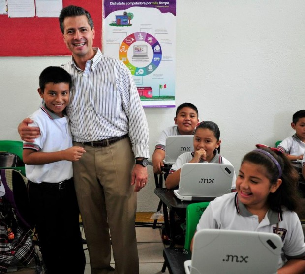 El presidente de la República, Enrique Peña Nieto, entregó hoy las primeras computadoras portátiles a niños de 5º y ...