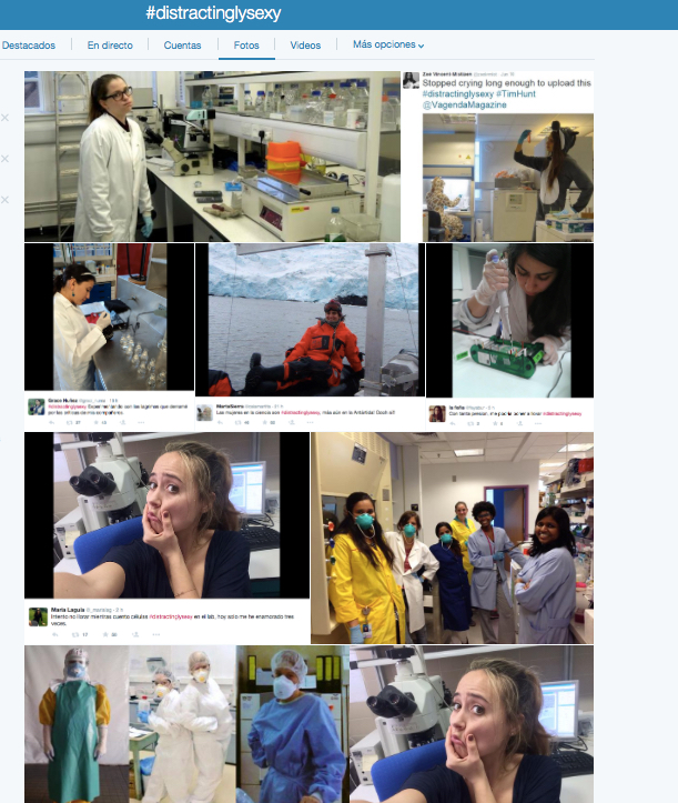 Aunque en público nadie, según él, lo interpeló o acusó de ser sexista luego de su comentario, las redes sociales (RS) empezaron a hacer su labor por medio del Twitter y entonces Hunt pasó de ser visto como un prestigiado científico a un patán sexista (sexist jerk). Incluso, se creo la etiqueta (hashtag) #distractinglysexy para mofarse de los dichos de Hunt, que volaba de regreso a Inglaterra mientras su esposa, Mary Collins, enfrentaba la reacción del University College London (UCL), institución de adscripción de ella y del Nobel. La UCL le sugería a Collins que o su esposo renunciaba o lo corrían (The Guardian, 13/06/15 nota de Robin McKie). Como se sabe, se optó por lo primero, pero ahí no paró la cosa.