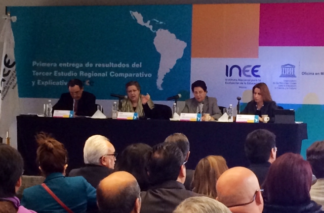 TERCE, es una prueba realizada por el Laboratorio Latinoamericano de Evaluación de la Calidad de la Educación y la presentación de los resultados en nuestro país se efectuó en las instalaciones del INEE; con la presencia de la directora y representante de la oficina en México de la UNESCO, Nuria Sanz; y de Roberto Peña Reséndiz, como representante de la SEP.
